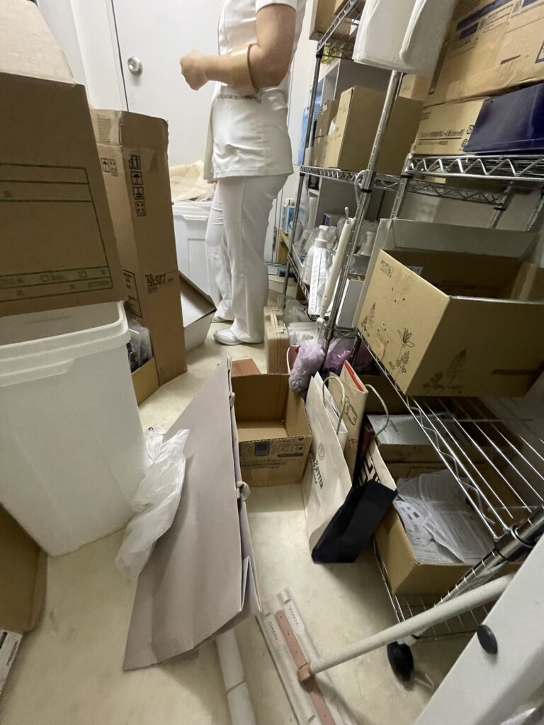 医療廃棄物などのゴミの保管もこちらでしているので直置きのものもたくさんあり、手狭で身動きが取りにくいです。